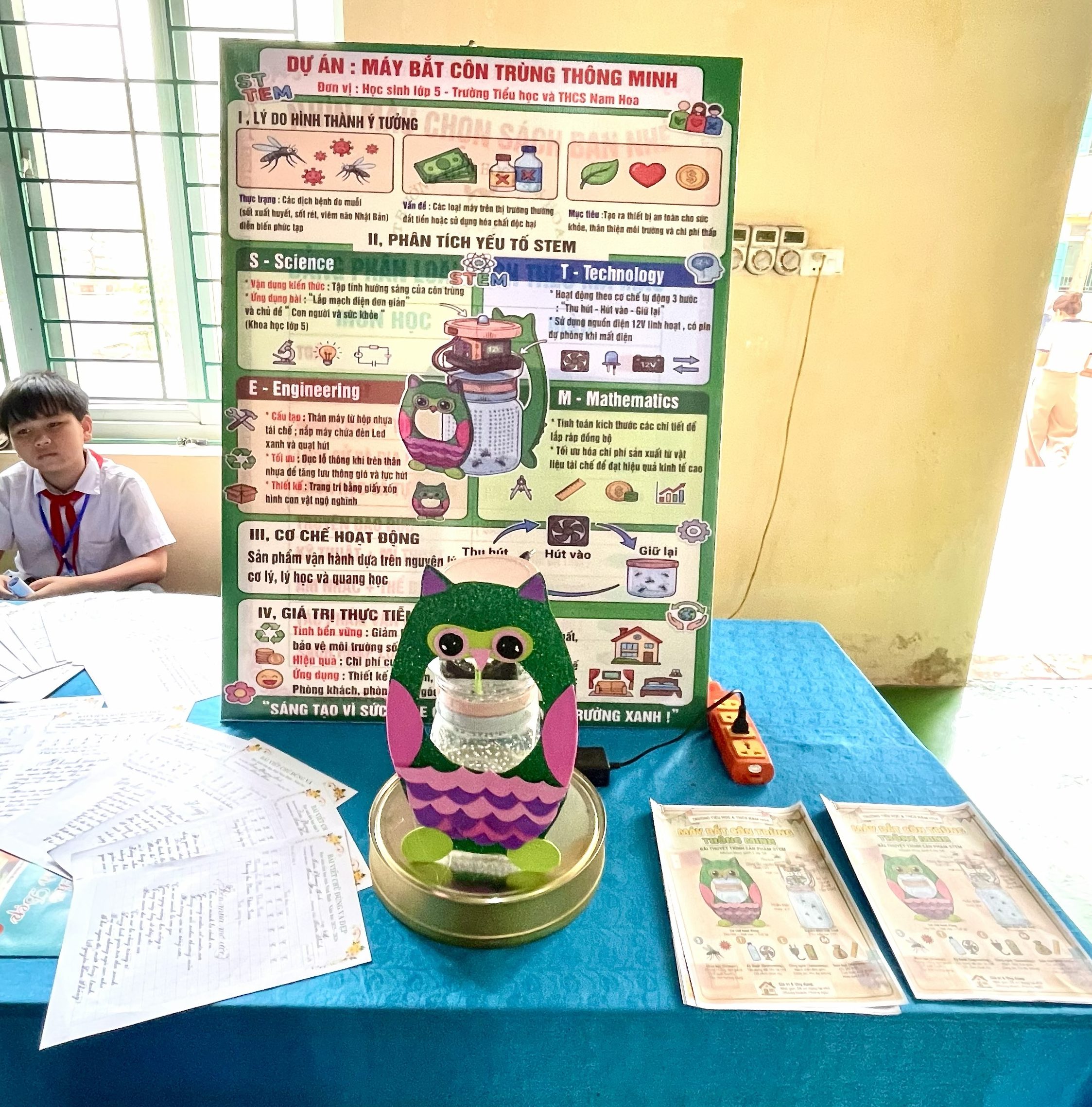 Sản phẩm “Máy bắt côn trùng thông minh” của các em HS trường Tiểu học và THCS Nam Hoa