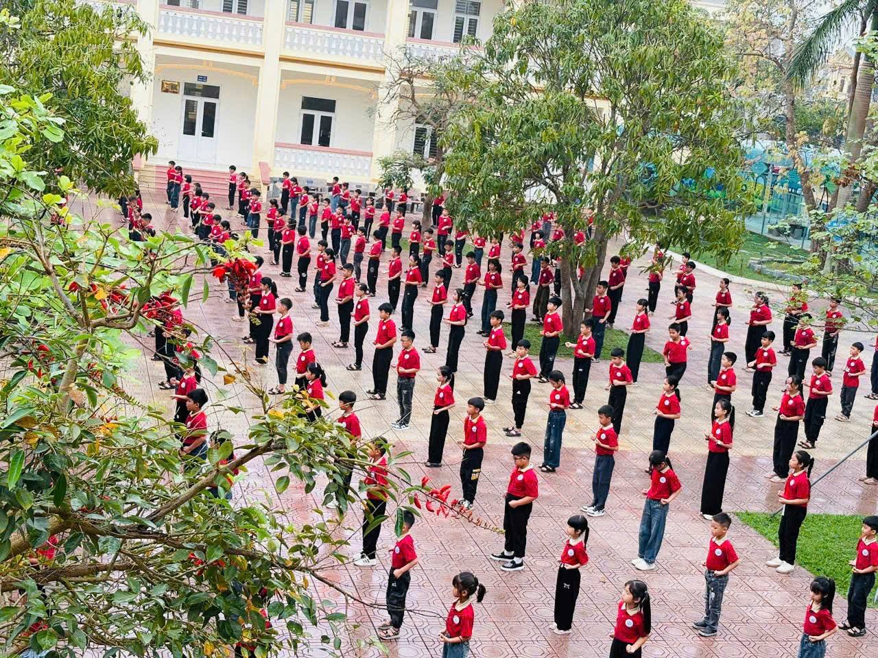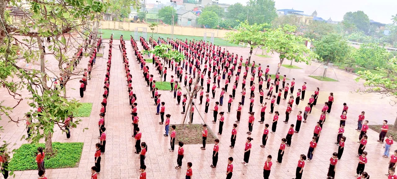 Đúng 09h00, toàn thể 683 học sinh tại 2 điểm trường đã cùng nhau tham gia màn đồng diễn Võ nhạc Vovinam quy mô lớn, góp phần tạo nên dấu ấn đặc biệt trong hoạt động giáo dục thể chất và rèn luyện kỹ năng sống cho học sinh. Hàng trăm động tác được thực hiện nhịp nhàng, đồng đều, tạo nên một “bức tranh chuyển động” đầy ấn tượng. Đó không chỉ là sự biểu diễn mà còn là minh chứng cho tinh thần: “Mạnh mẽ – Tự tin – Tỏa sáng”