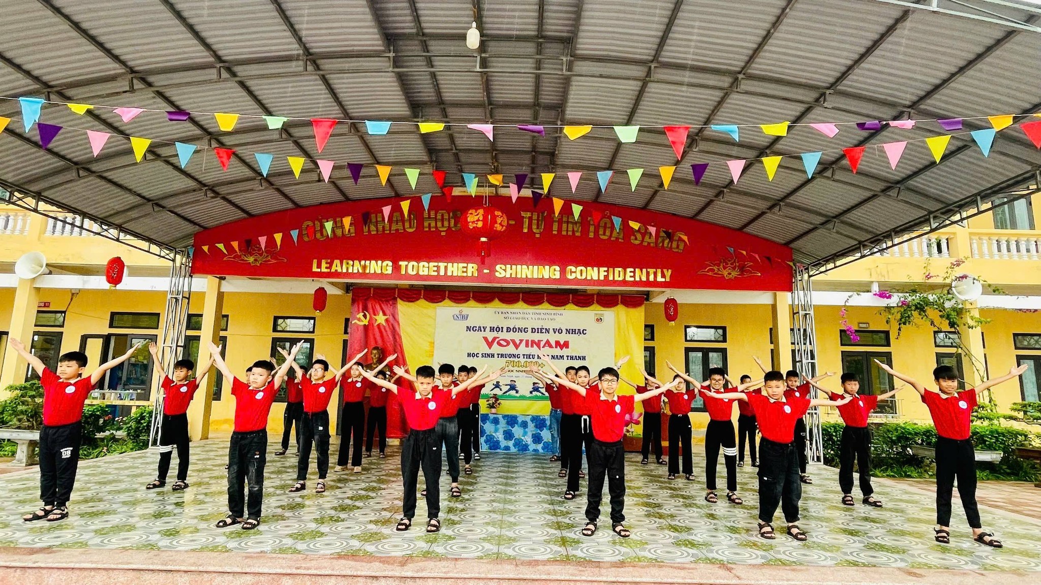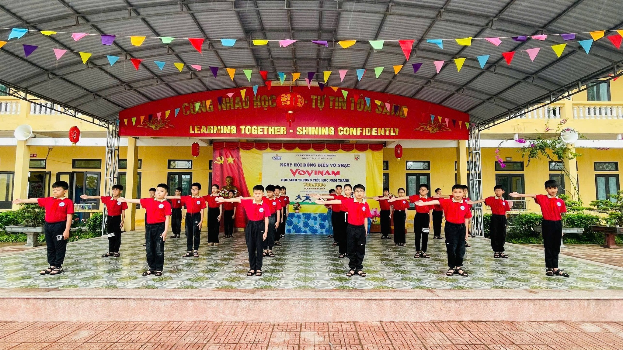 Hòa chung không khí sôi nổi của Ngày hội đồng diễn Võ nhạc Vovinam do Sở Giáo dục và Đào tạo tỉnh Ninh Bình phát động, cùng với hơn 700 000 học sinh phổ thông trên địa bàn tỉnh, sáng ngày 27/3/2026, thầy trò Trường Tiểu học Nam Thanh tích cực tham gia hưởng ứng với tinh thần hào hứng, đoàn kết và đầy nhiệt huyết, góp phần lan tỏa phong trào rèn luyện thể chất và niềm tự hào về môn võ truyền thống của dân tộc.